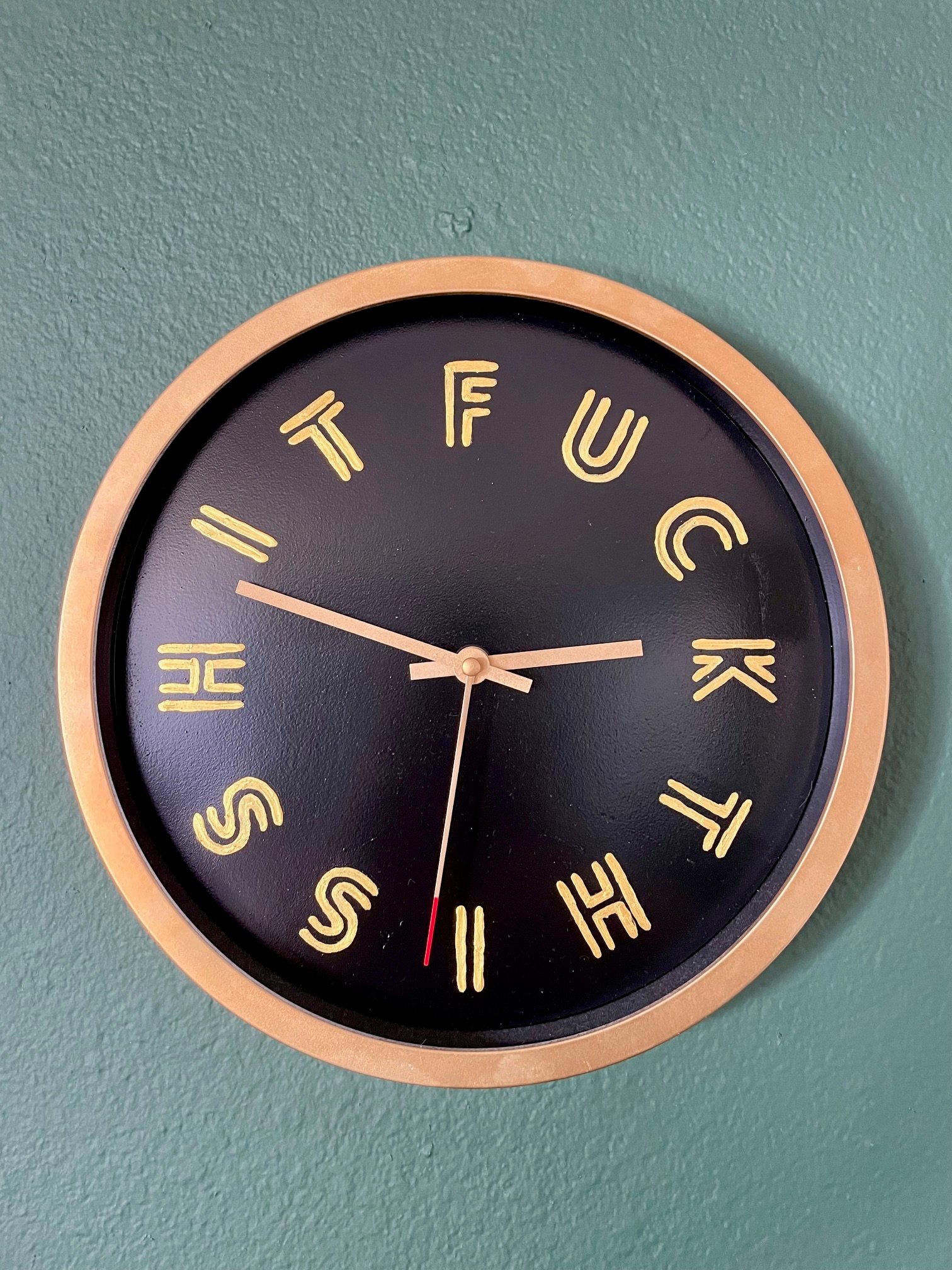 Hand made and hand painted. Never be on time again with the Fuck This Shit clock. Fully functional clock. Comes with battery. Sweeping second hand. Ready to hang! 12 inches in diameter.