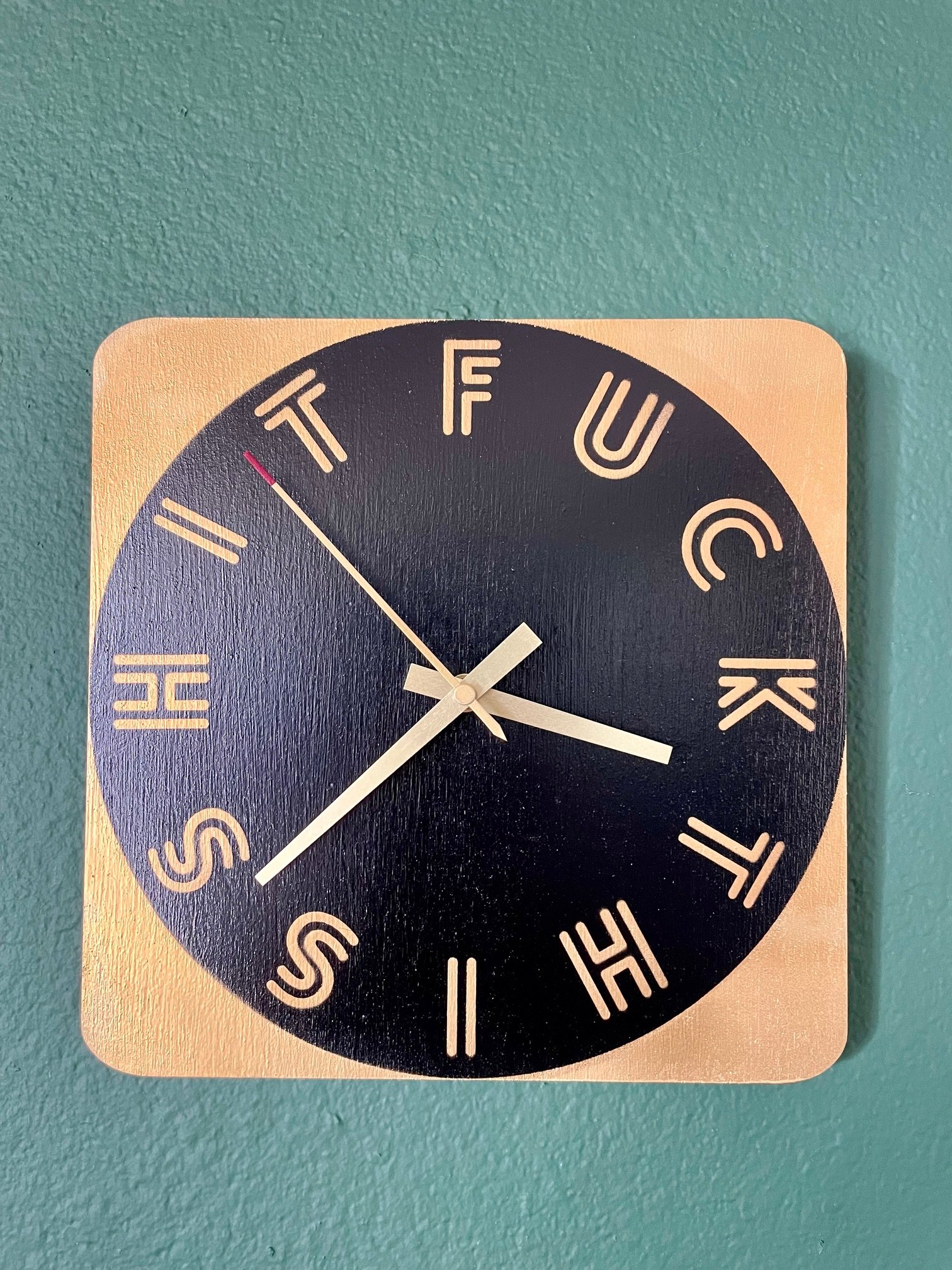Hand made and painted clock on birch. Comes with battery. Fully functioning clock art piece. Sweeping second hand. Ready to hang! 10 x 10 inches.